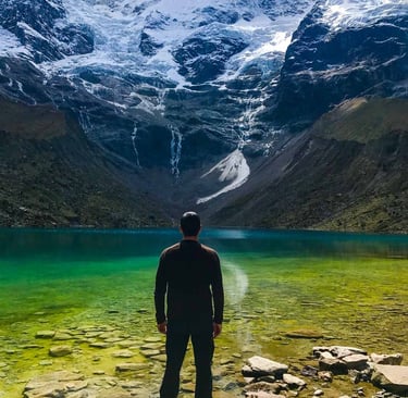 En el corazón del camino Salkantay, cerca de la laguna Humantay, rodeados de montañas majestuosas.