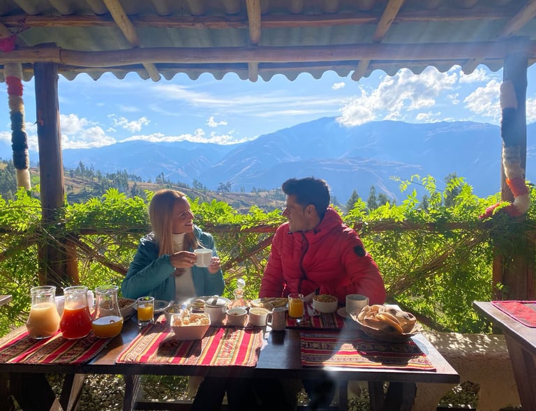 Desayuno y comidas preparadas con ingredientes locales , ideales para recargar energias con sabor andino .